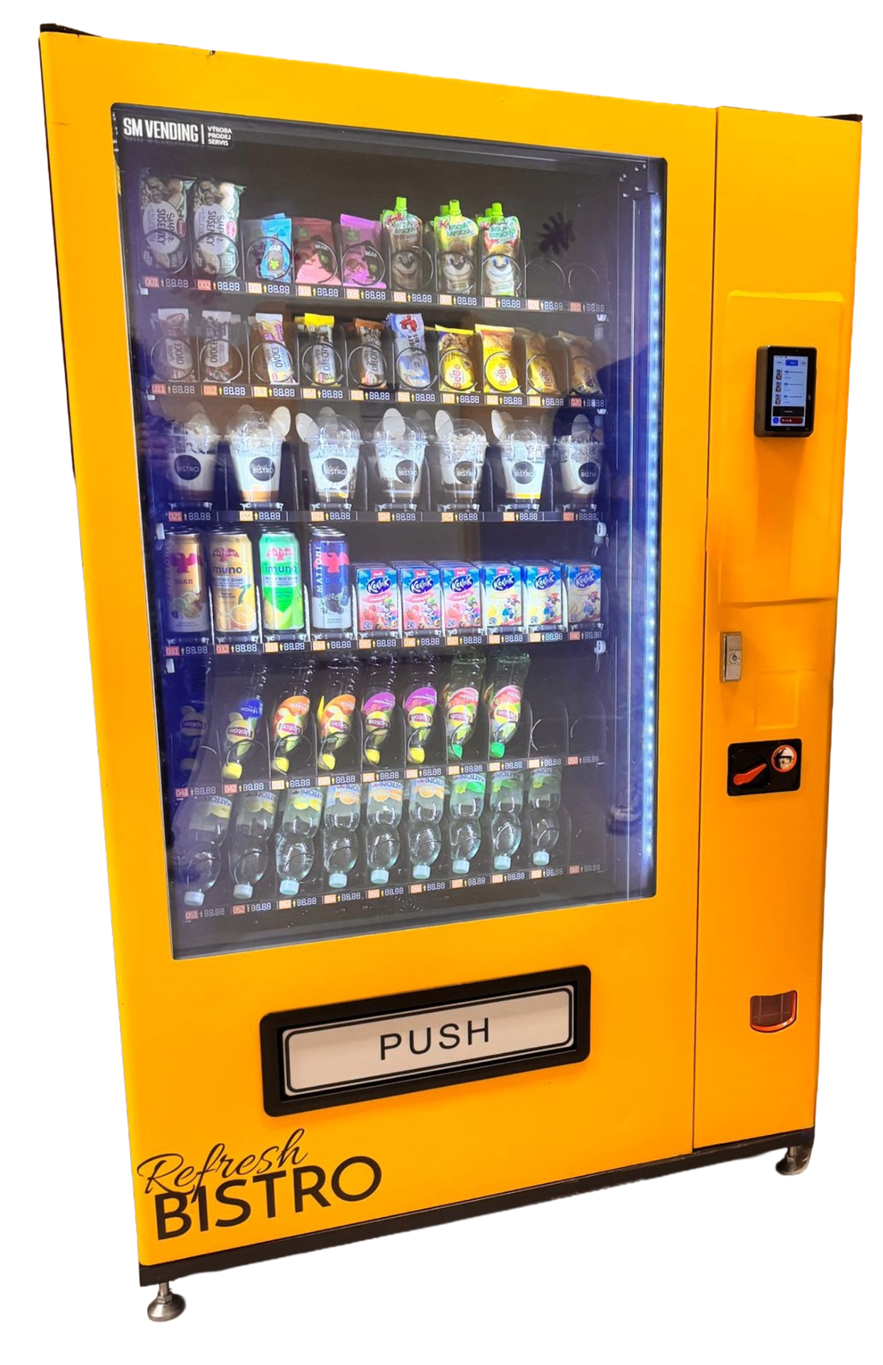 Prodejní automat umožňuje prodej nejen baleného sortimentu, ale i připravovaných produktů, jako jsou domácí jogurty, sendviče nebo wrapy.
